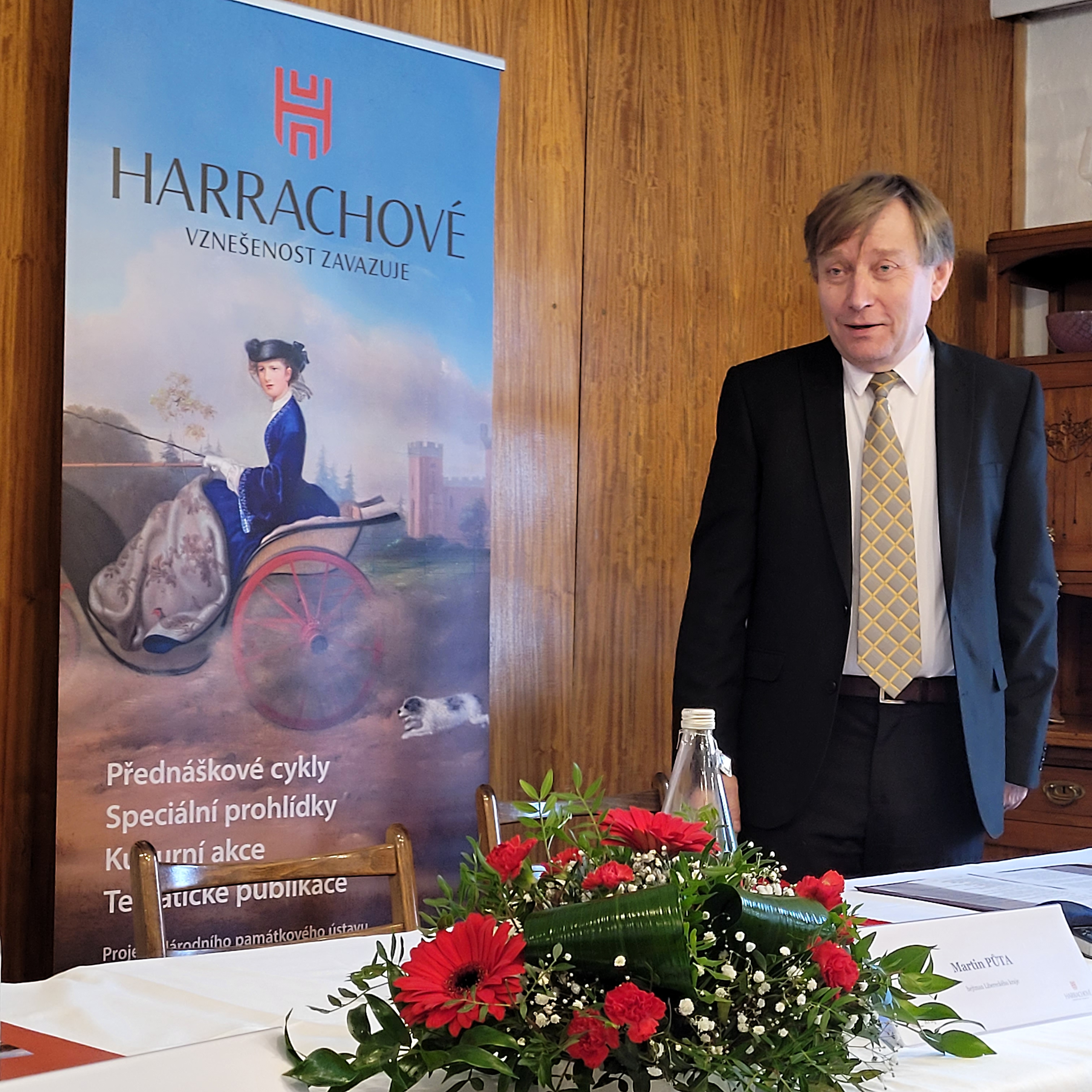 "Zejména v dnešní uspěchané a přetechnizované době jsou hraběcí nadhled, elegance a důstojnost tím, co nám často schází a co bychom si alespoň na chvíli přáli vrátit zpět. Heslem Harrachů je "Ctnost vítězí nad nepřízní". Jeho platnost je nadčasová. Mějme je proto na paměti a snažme se jim řídit. Svět pak možná bude o něco lepším místem pro každého z nás," uvedl hejtman Libereckého kraje Martin Půta, pod jehož záštitou byl harrachovský rok zahájen.